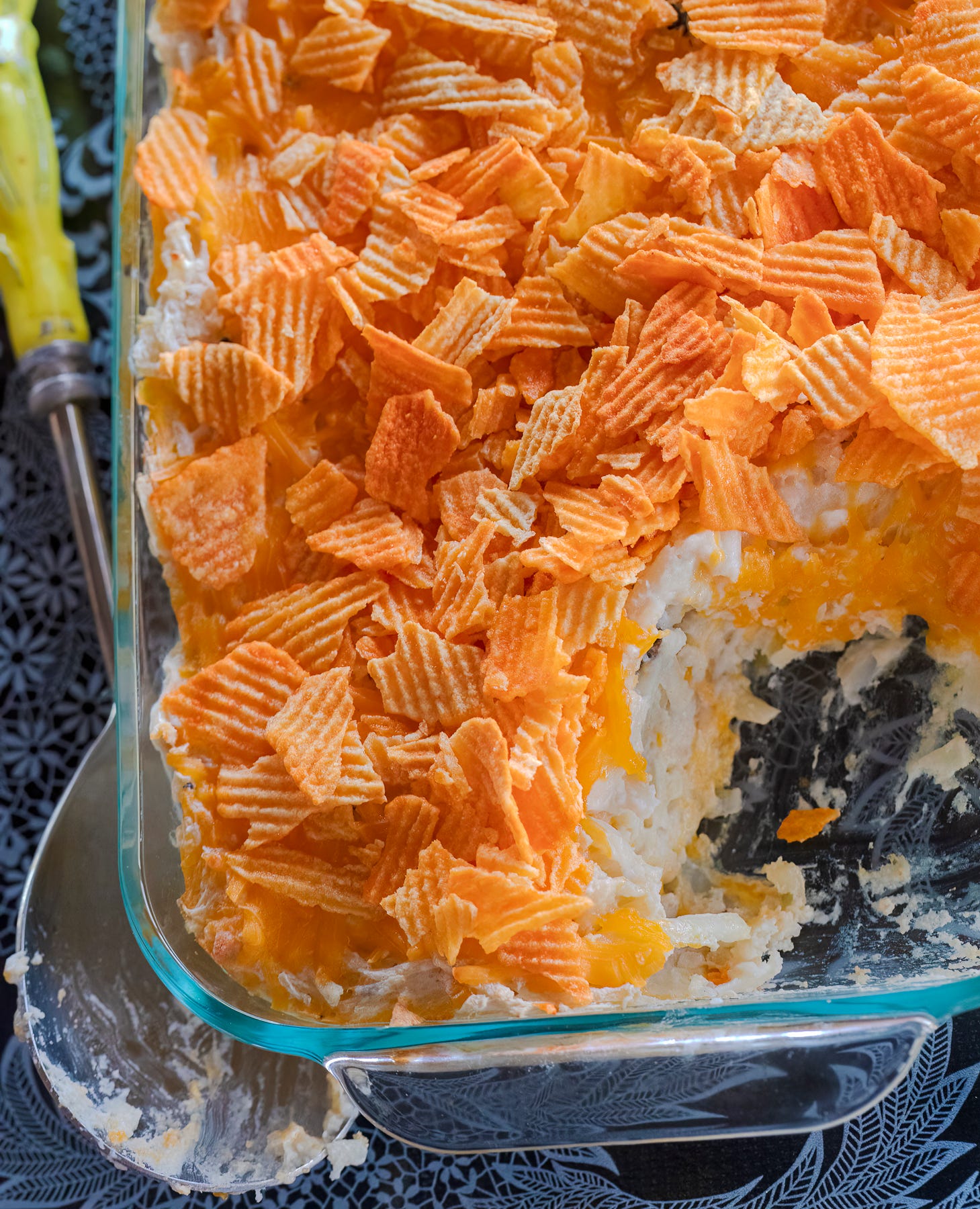 Cheesy Potato Casserole with Baked Potato Chip Topping